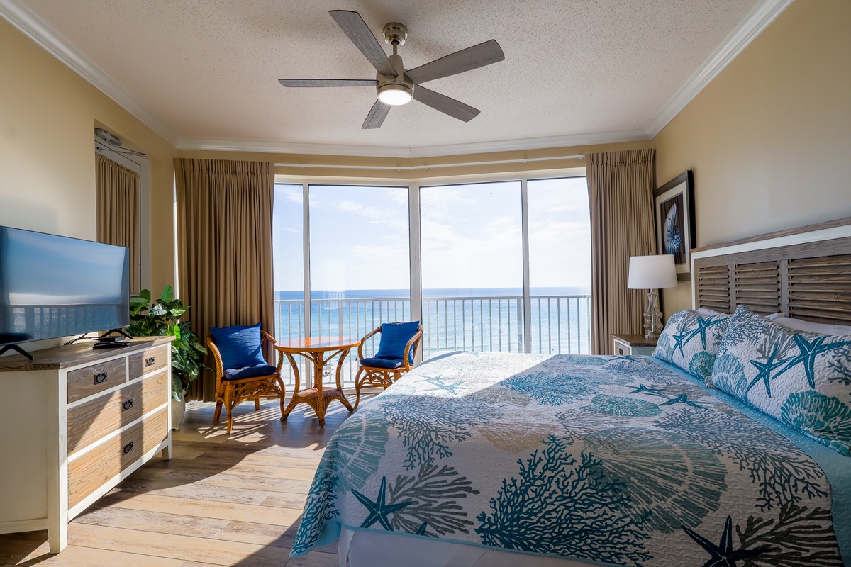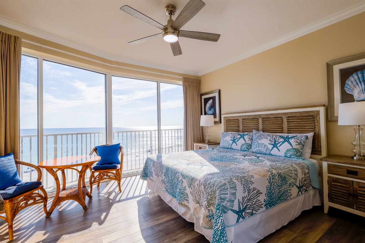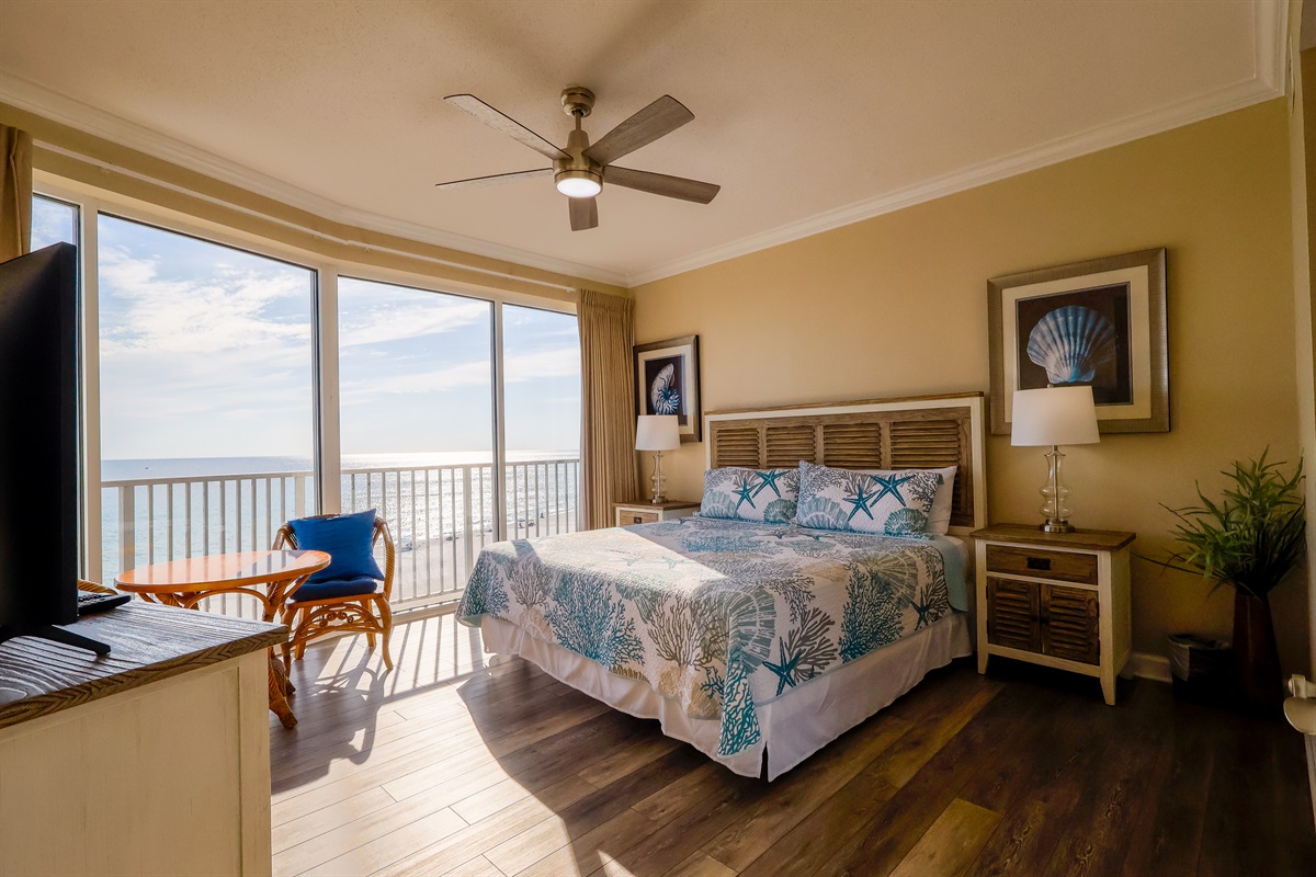 Gorgeous Oceanfront Balcony! Boardwalk Beach Resort is a beachfront resort with complete private beach access! Enjoy our 2500 sqft beachfront lagoon pool (seasonally heated), 2 hot tubs, and kids splash pad! This beautiful sunset view condo hosts up to 4 guests comfortably with a King bed in the master and a Queen in the 2nd bedroom. It has a fully equipped kitchen and all the amenities of a home for an amazing stay! Fully vacation ready!