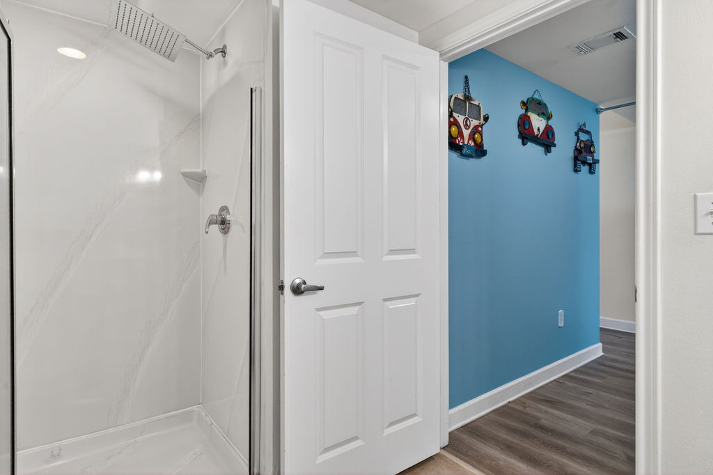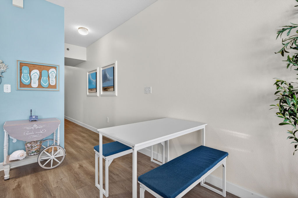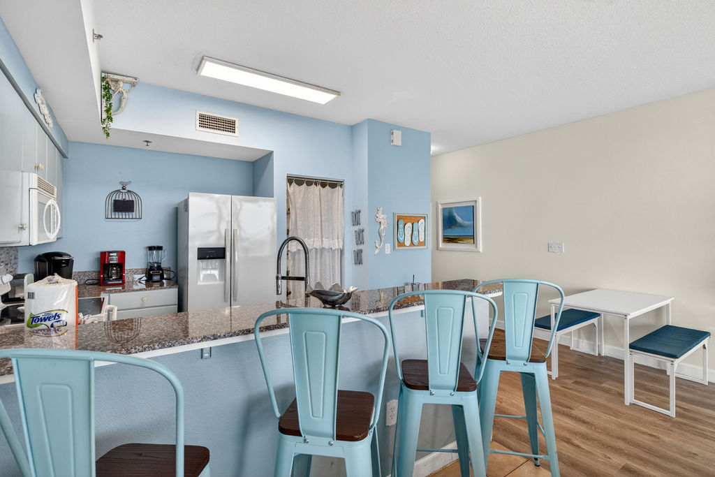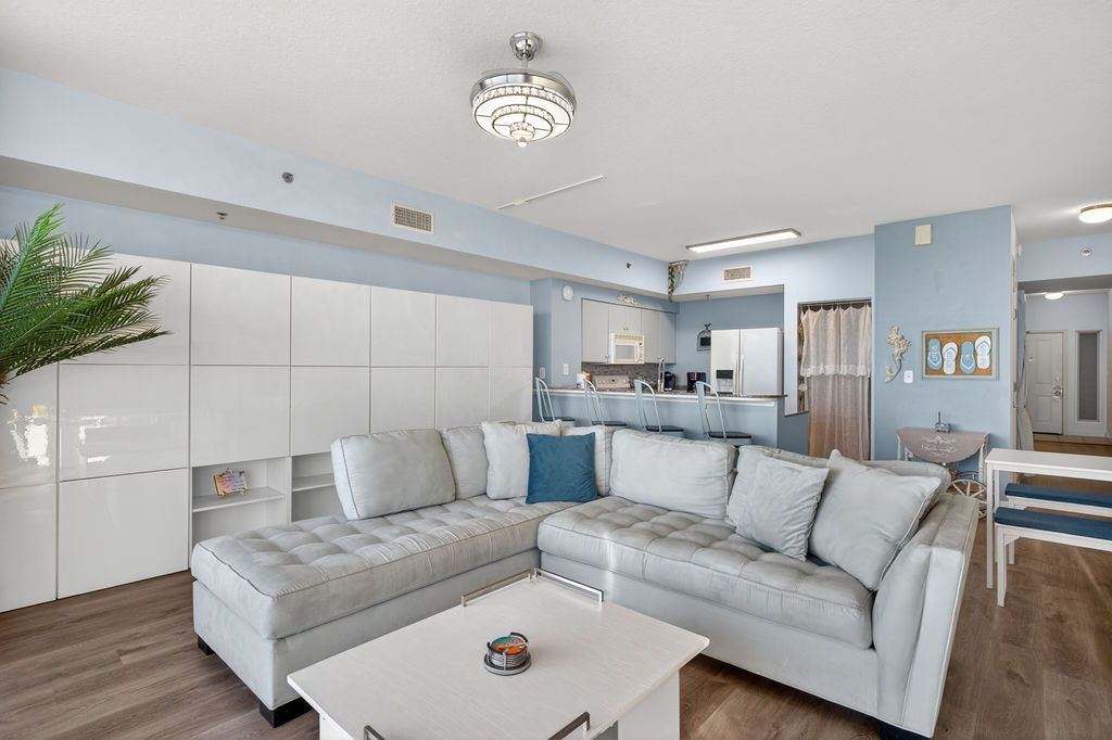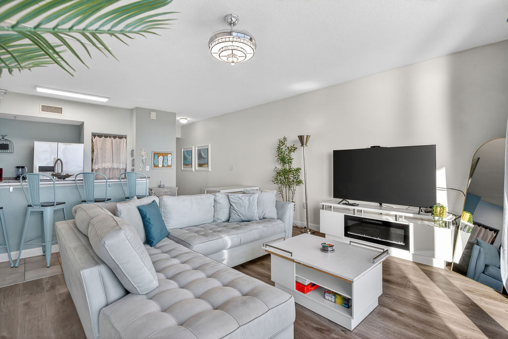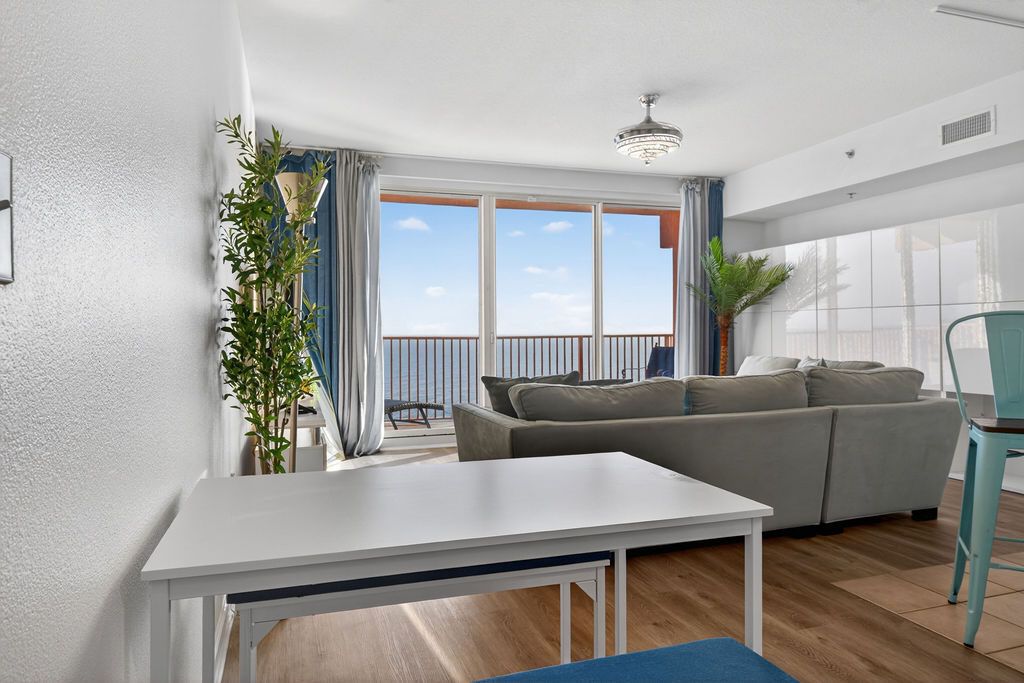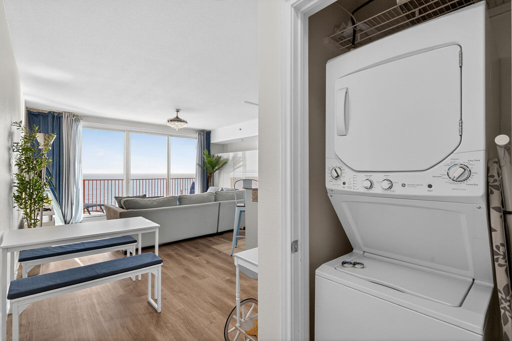 Kick your feet up and take in a breathtaking view of the Gulf waves! This beautiful condo hosts up to 4 guests comfortably! From this 21st floor furnished balcony see nothing but the sun over the ocean! The one bedroom unit offers a King bed in the bedroom and a Twin bunk bed alcove both with ensuite bathrooms. Full kitchen with essentials, full sized refrigerator, washer, and dryer. Fully vacation ready! This condo also has a reserved parking spot on the 3rd floor! Shores of Panama Resort is also right across the street from Walmart, convenient for anything you could possibly need during your vacation!