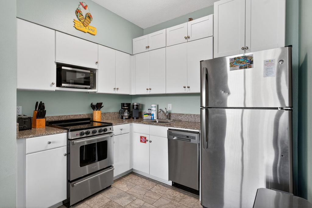 - Full Kitchen includes: Full Refrigerator, Stove, Oven, Dishwasher, Microwave, Keurig/Coffee Maker, Toaster, Blender, Dishes & Silverware, as well as the cooking basics such as pots, pans, salt & pepper.