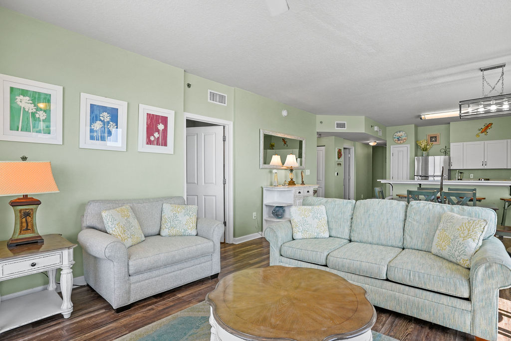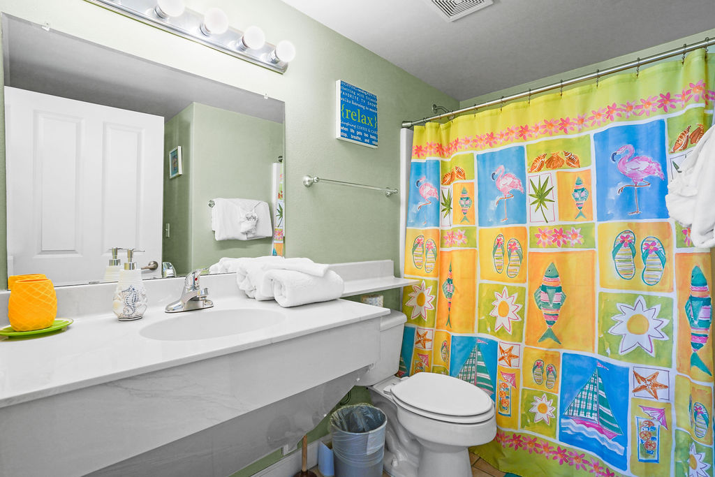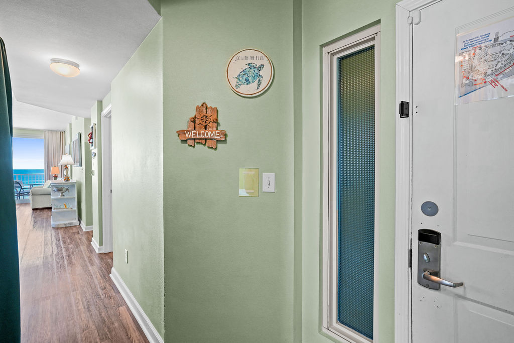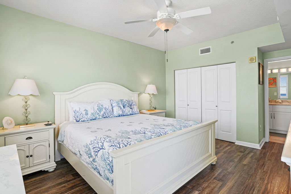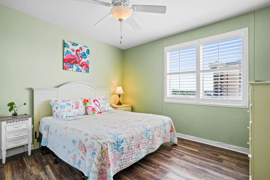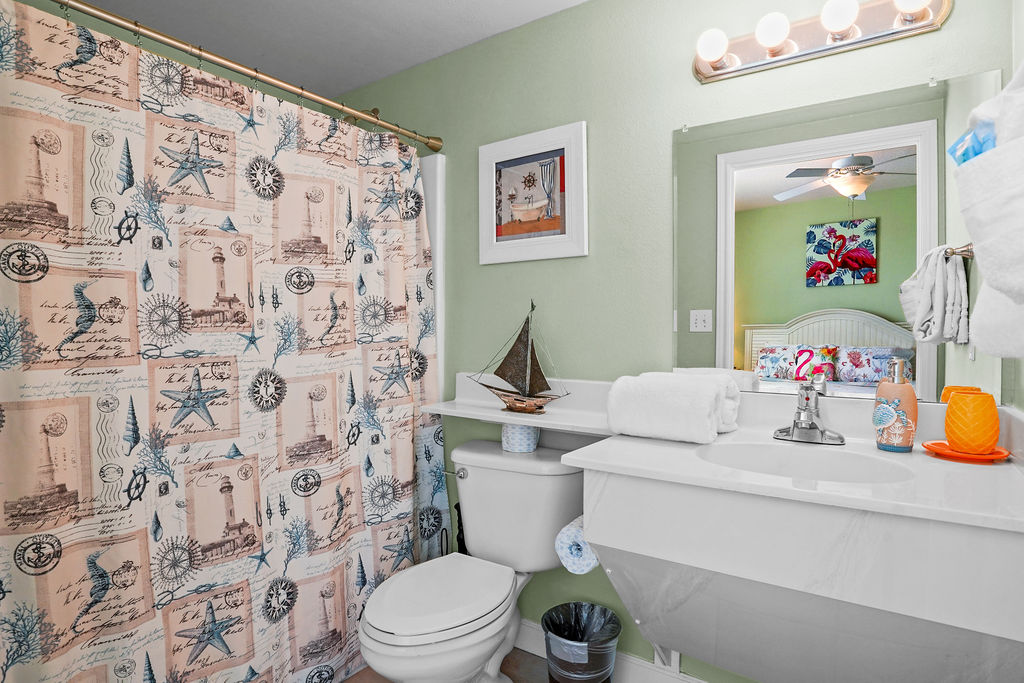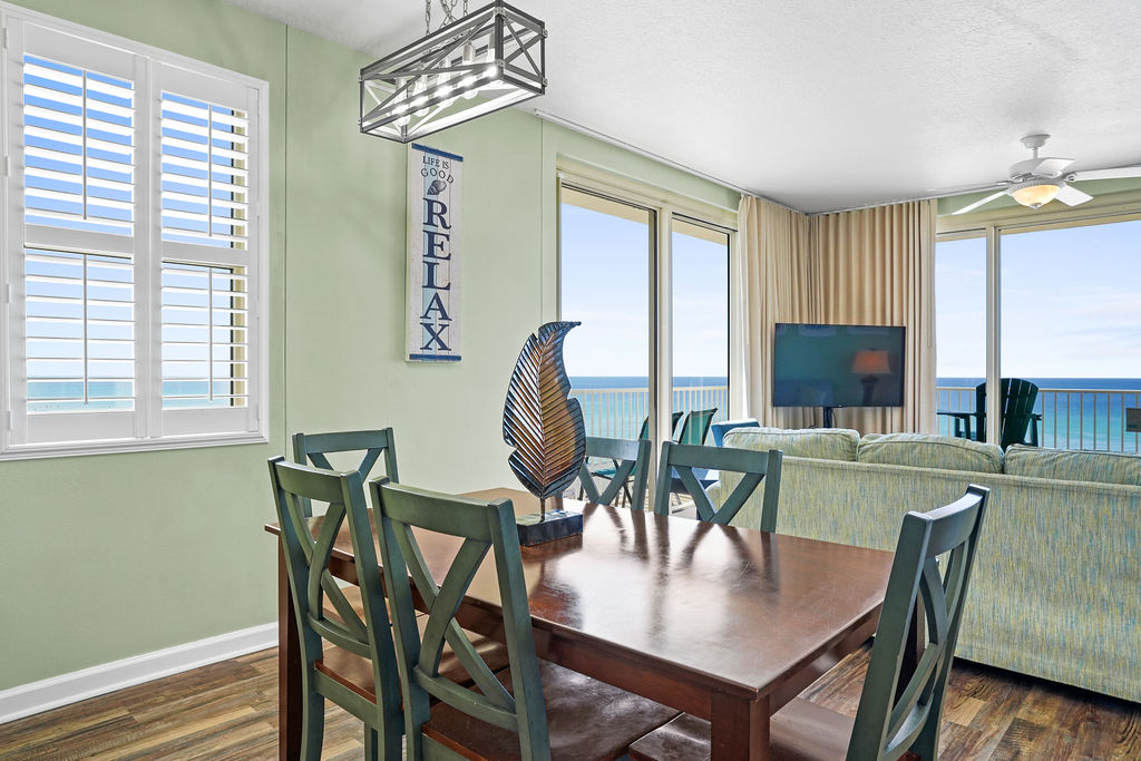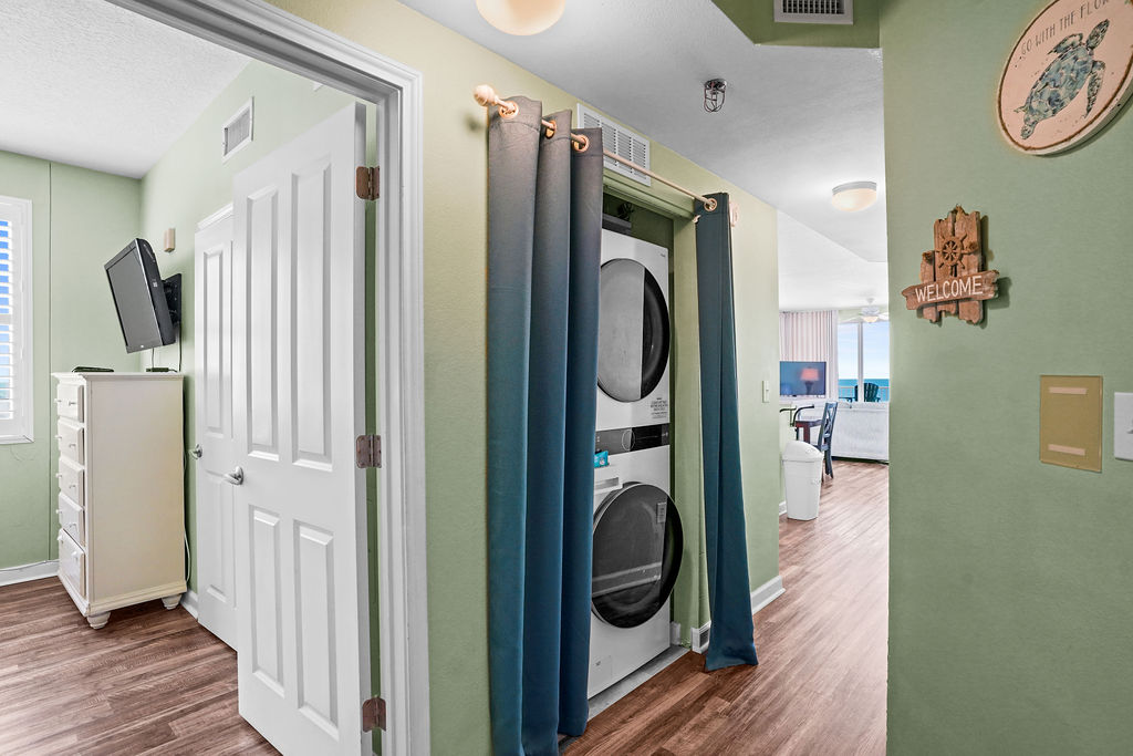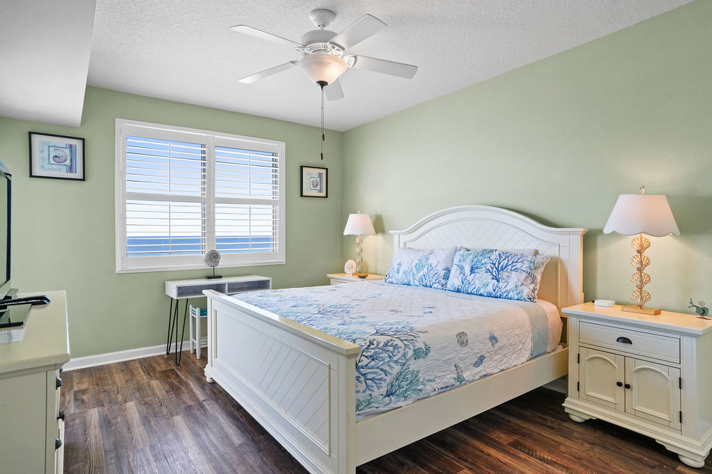 Bring the whole family for some fun in the sun! This beautiful condo hosts up to 8 guests comfortably! The horseshoe shape of this building allows a unique seclusion from the city outside! When sitting on your furnished, 5th floor balcony you have a breathtaking unobstructed view of the ocean! This 3 bedroom unit offers two King bedrooms, a Queen bedroom all with full ensuite bathrooms and a sofa bed in the living room. Full kitchen with essentials, full sized refrigerator, washer, and dryer. Fully vacation ready! This condo also has 2 reserved parking spots on the same floor! Shores of Panama Resort is also right across the street from Walmart, convenient for anything you could possibly need during your vacation!