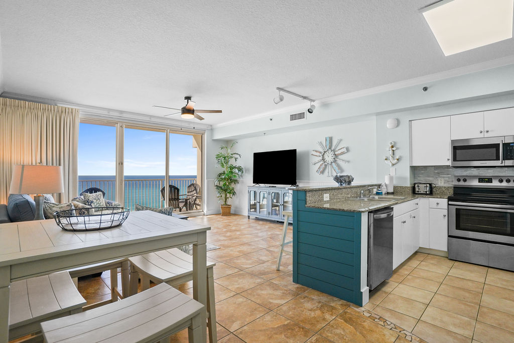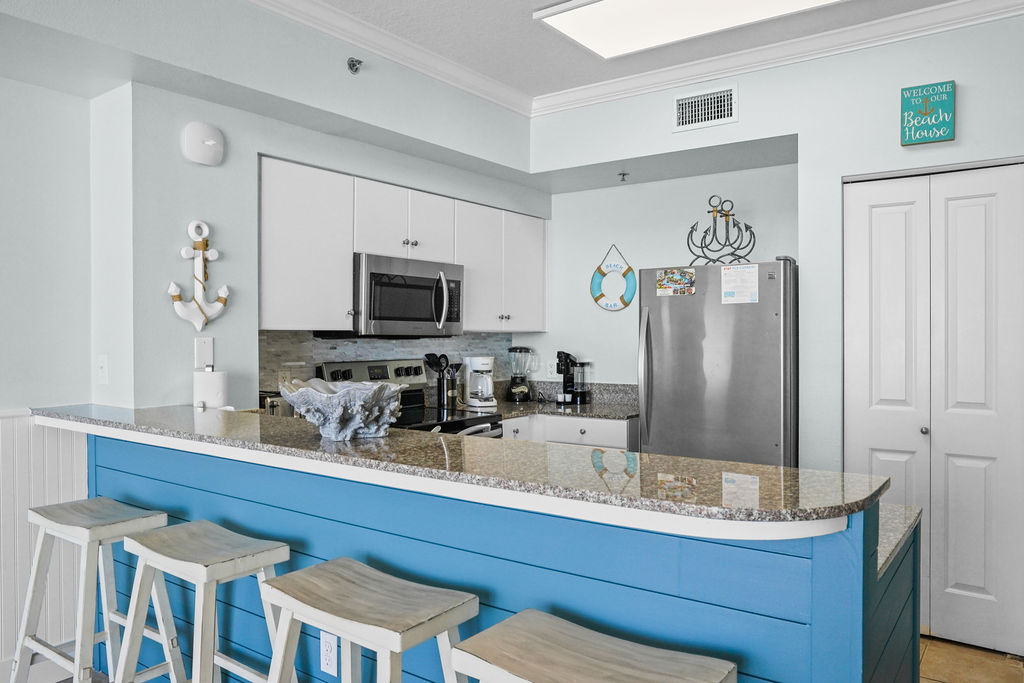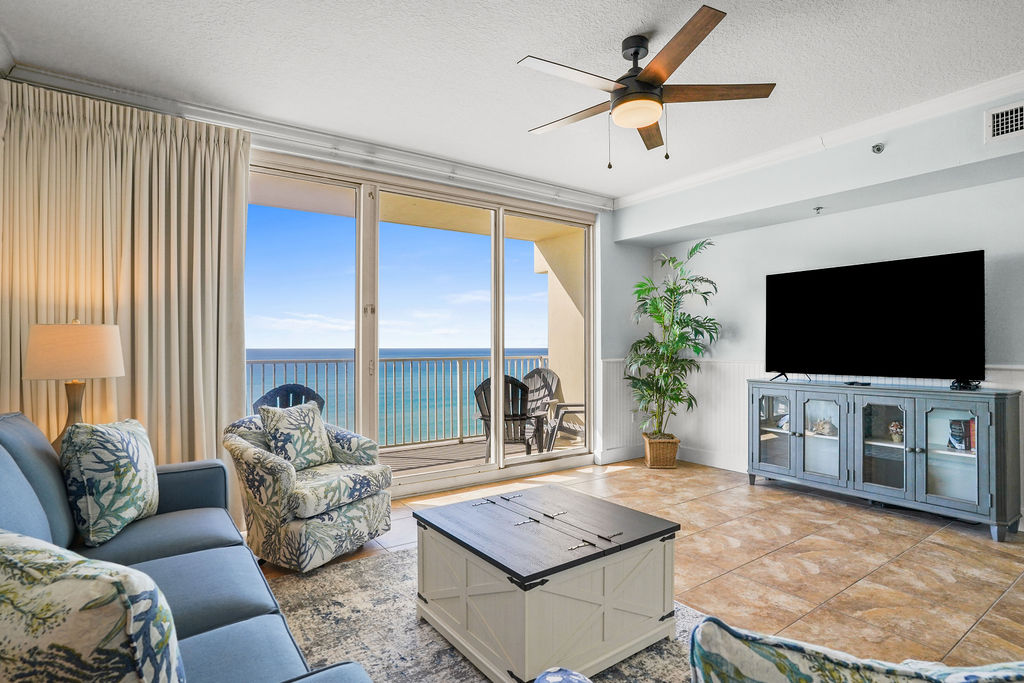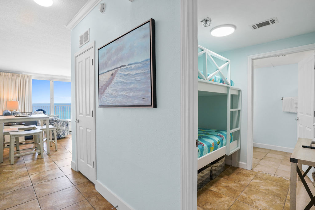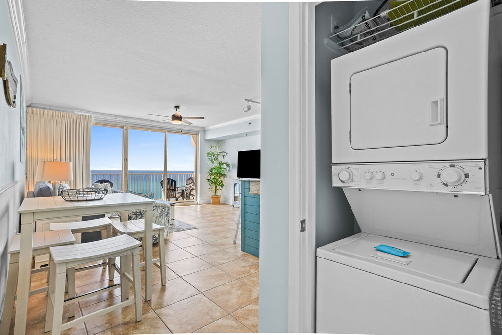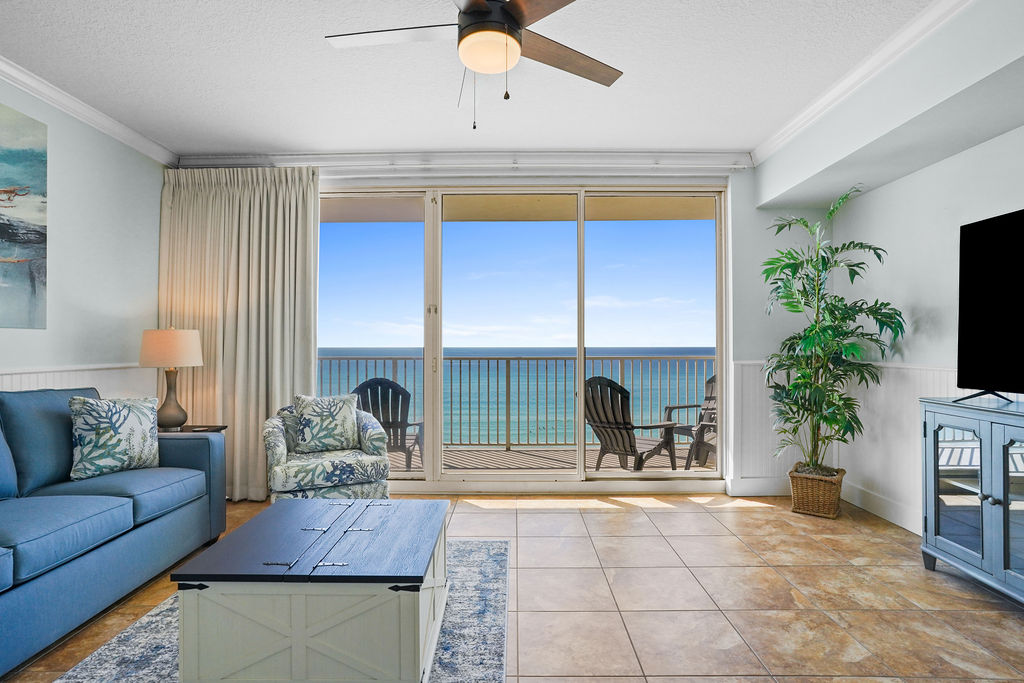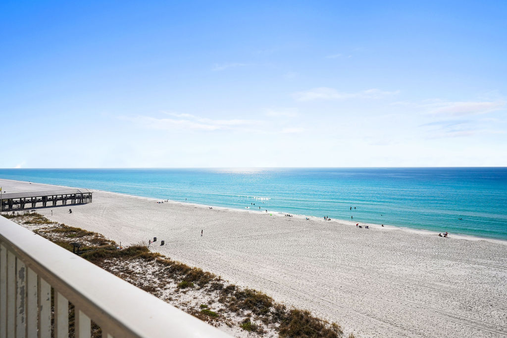 Kick your feet up and take in a breathtaking view of the Gulf waves! This beautiful condo hosts up to 6 guests comfortably! From this 6th floor furnished balcony see nothing but the sun over the ocean! The one bedroom unit offers a King bed in the bedroom, Twin bunk beds and Queen sleeper sofa. Full kitchen with essentials, full sized refrigerator, washer, and dryer. Fully vacation ready! This condo even has same floor reserved parking! Shores of Panama Resort is also right across the street from Walmart, convenient for anything you could possibly need during your vacation!