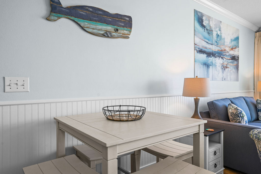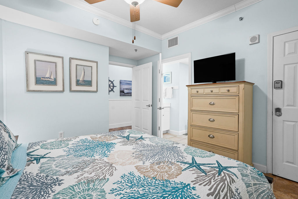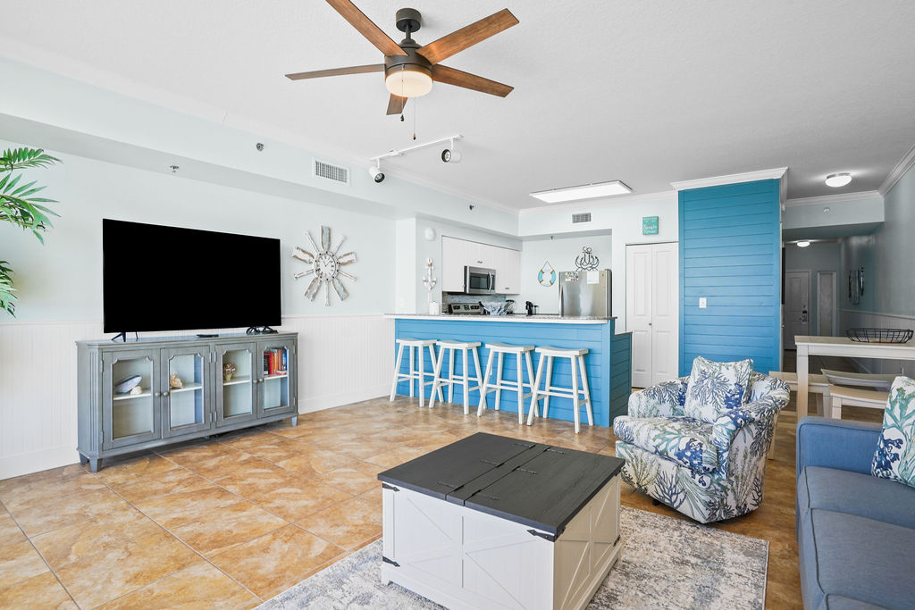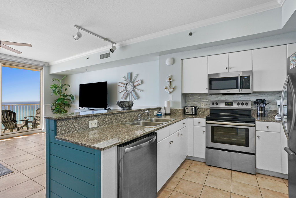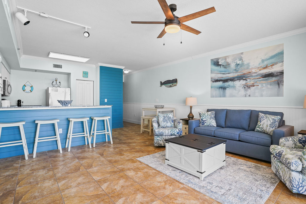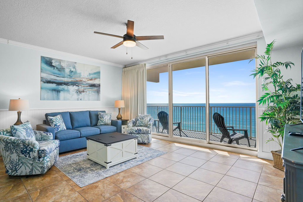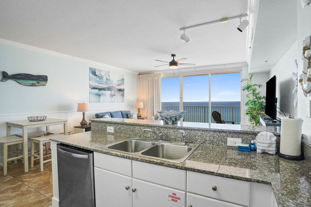 Kick your feet up and take in a breathtaking view of the Gulf waves! This beautiful condo hosts up to 6 guests comfortably! From this 6th floor furnished balcony see nothing but the sun over the ocean! The one bedroom unit offers a King bed in the bedroom, Twin bunk beds and Queen sleeper sofa. Full kitchen with essentials, full sized refrigerator, washer, and dryer. Fully vacation ready! This condo even has same floor reserved parking! Shores of Panama Resort is also right across the street from Walmart, convenient for anything you could possibly need during your vacation!